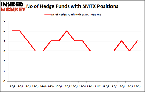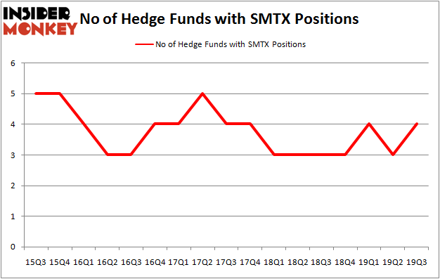 At the end of the third quarter, a total of 4 of the hedge funds tracked by Insider Monkey were long this stock, a change of 33% from the second quarter of 2019. By comparison, 3 hedge funds held shares or bullish call options in SMTX a year ago. So, let’s review which hedge funds were among the top holders of the stock and which hedge funds were making big moves.