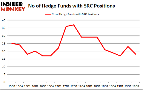 At the end of the third quarter, a total of 18 of the hedge funds tracked by Insider Monkey were bullish on this stock, a change of -22% from the previous quarter. On the other hand, there were a total of 21 hedge funds with a bullish position in SRC a year ago. With hedgies’ sentiment swirling, there exists an “upper tier” of noteworthy hedge fund managers who were adding to their holdings substantially (or already accumulated large positions).