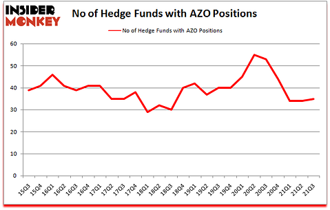 Is AutoZone, Inc. (NYSE:AZO) a splendid stock to buy now? Hedge funds were betting on the stock. The number of bullish hedge fund positions increased by 1 in recent months. AutoZone, Inc. (NYSE:AZO) was in 35 hedge funds’ portfolios at the end of the third quarter of 2021. The all time high for this statistic is 55. Our calculations also showed that AZO isn’t among the 30 most popular stocks among hedge funds (click for Q3 rankings). There were 34 hedge funds in our database with AZO positions at the end of the second quarter.