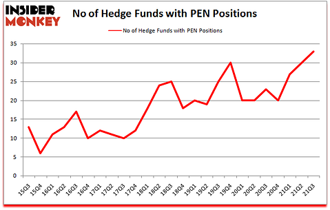 At third quarter’s end, a total of 33 of the hedge funds tracked by Insider Monkey were bullish on this stock, a change of 10% from the previous quarter. Below, you can check out the change in hedge fund sentiment towards PEN over the last 25 quarters. So, let’s see which hedge funds were among the top holders of the stock and which hedge funds were making big moves.