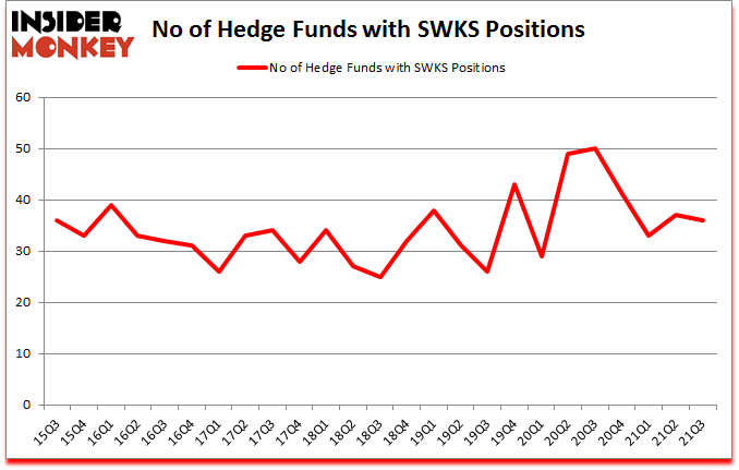 At the end of September, a total of 36 of the hedge funds tracked by Insider Monkey held long positions in this stock, a change of -3% from the second quarter of 2021. Below, you can check out the change in hedge fund sentiment towards SWKS over the last 25 quarters. So, let’s review which hedge funds were among the top holders of the stock and which hedge funds were making big moves.