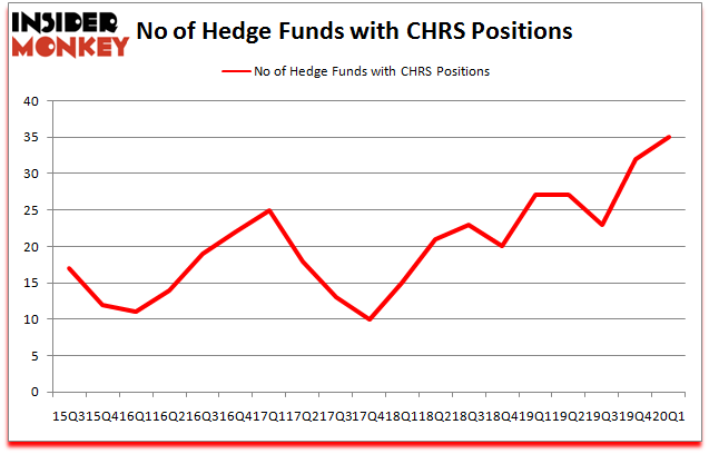 At Q1’s end, a total of 35 of the hedge funds tracked by Insider Monkey were long this stock, a change of 9% from one quarter earlier. Below, you can check out the change in hedge fund sentiment towards CHRS over the last 18 quarters. With the smart money’s sentiment swirling, there exists a few key hedge fund managers who were increasing their stakes meaningfully (or already accumulated large positions).