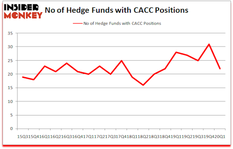 At Q1’s end, a total of 22 of the hedge funds tracked by Insider Monkey held long positions in this stock, a change of -29% from the previous quarter. By comparison, 28 hedge funds held shares or bullish call options in CACC a year ago. So, let’s examine which hedge funds were among the top holders of the stock and which hedge funds were making big moves.