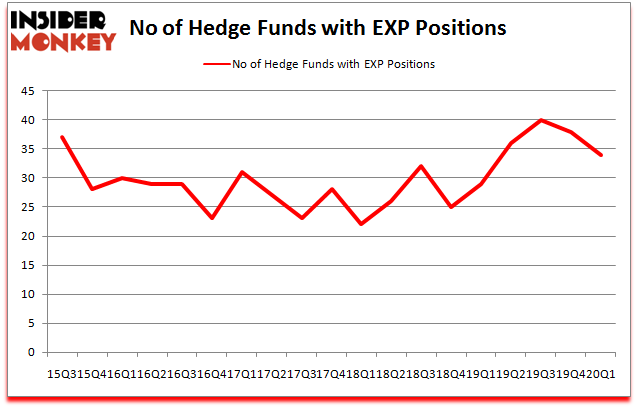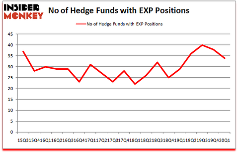 At the end of the first quarter, a total of 34 of the hedge funds tracked by Insider Monkey held long positions in this stock, a change of -11% from one quarter earlier. Below, you can check out the change in hedge fund sentiment towards EXP over the last 18 quarters. So, let’s examine which hedge funds were among the top holders of the stock and which hedge funds were making big moves.
