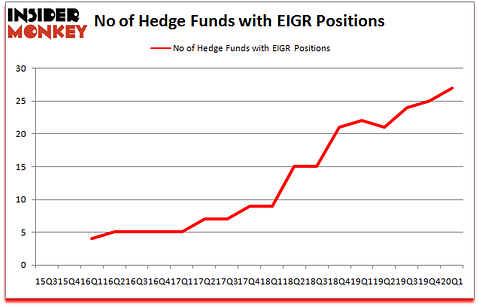 Heading into the second quarter of 2020, a total of 27 of the hedge funds tracked by Insider Monkey were long this stock, a change of 8% from the fourth quarter of 2019. Below, you can check out the change in hedge fund sentiment towards EIGR over the last 18 quarters. So, let’s examine which hedge funds were among the top holders of the stock and which hedge funds were making big moves.