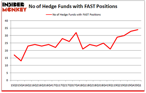 Fastenal Company (NASDAQ:FAST) investors should be aware of an increase in hedge fund sentiment lately. FAST was in 34 hedge funds’ portfolios at the end of March. There were 33 hedge funds in our database with FAST holdings at the end of the previous quarter. Our calculations also showed that FAST isn’t among the 30 most popular stocks among hedge funds (click for Q1 rankings and see the video for a quick look at the top 5 stocks).