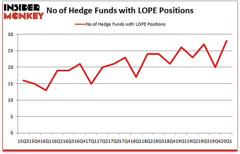At Q1’s end, a total of 28 of the hedge funds tracked by Insider Monkey held long positions in this stock, a change of 40% from the fourth quarter of 2019. On the other hand, there were a total of 26 hedge funds with a bullish position in LOPE a year ago. With hedge funds’ capital changing hands, there exists a few key hedge fund managers who were upping their holdings considerably (or already accumulated large positions).