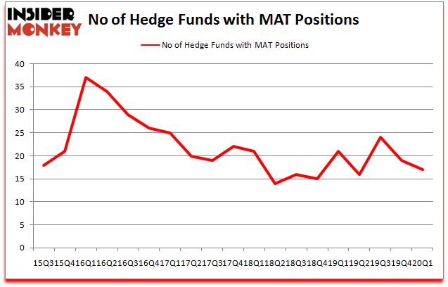 At the end of the first quarter, a total of 17 of the hedge funds tracked by Insider Monkey were long this stock, a change of -11% from the fourth quarter of 2019. By comparison, 21 hedge funds held shares or bullish call options in MAT a year ago. With hedge funds’ positions undergoing their usual ebb and flow, there exists a few key hedge fund managers who were increasing their holdings significantly (or already accumulated large positions).