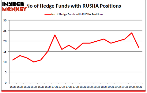 At Q1’s end, a total of 17 of the hedge funds tracked by Insider Monkey held long positions in this stock, a change of -29% from the previous quarter. The graph below displays the number of hedge funds with bullish position in RUSHA over the last 18 quarters. With hedge funds’ capital changing hands, there exists a few key hedge fund managers who were boosting their holdings considerably (or already accumulated large positions).