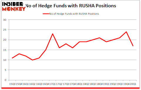 At Q1’s end, a total of 17 of the hedge funds tracked by Insider Monkey held long positions in this stock, a change of -29% from the previous quarter. The graph below displays the number of hedge funds with bullish position in RUSHA over the last 18 quarters. With hedge funds’ capital changing hands, there exists a few key hedge fund managers who were boosting their holdings considerably (or already accumulated large positions).