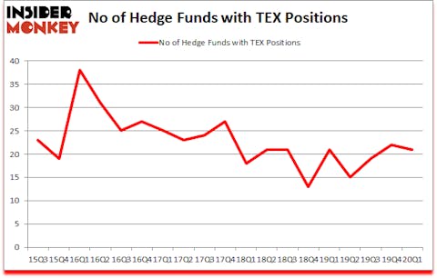 At Q1’s end, a total of 21 of the hedge funds tracked by Insider Monkey were long this stock, a change of -5% from the previous quarter. On the other hand, there were a total of 21 hedge funds with a bullish position in TEX a year ago. With the smart money’s capital changing hands, there exists an “upper tier” of key hedge fund managers who were boosting their holdings considerably (or already accumulated large positions).