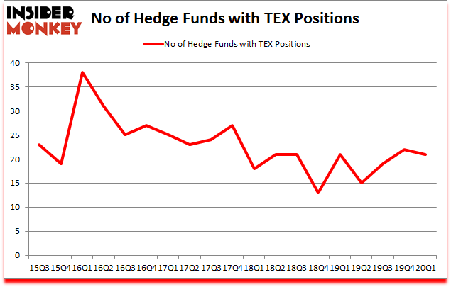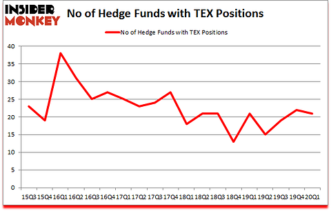 At Q1’s end, a total of 21 of the hedge funds tracked by Insider Monkey were long this stock, a change of -5% from the previous quarter. On the other hand, there were a total of 21 hedge funds with a bullish position in TEX a year ago. With the smart money’s capital changing hands, there exists an “upper tier” of key hedge fund managers who were boosting their holdings considerably (or already accumulated large positions).