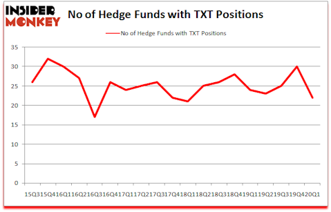 At the end of the first quarter, a total of 22 of the hedge funds tracked by Insider Monkey were long this stock, a change of -27% from the previous quarter. The graph below displays the number of hedge funds with bullish position in TXT over the last 18 quarters. So, let’s find out which hedge funds were among the top holders of the stock and which hedge funds were making big moves.