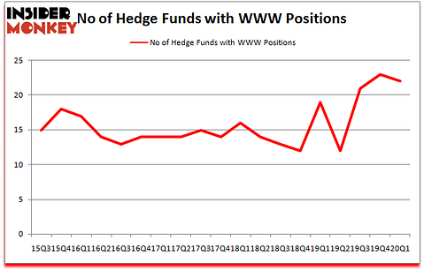 At Q1’s end, a total of 22 of the hedge funds tracked by Insider Monkey were bullish on this stock, a change of -4% from one quarter earlier. On the other hand, there were a total of 19 hedge funds with a bullish position in WWW a year ago. With the smart money’s capital changing hands, there exists a select group of notable hedge fund managers who were boosting their stakes meaningfully (or already accumulated large positions).