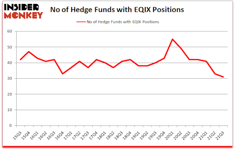 Equinix Inc (NASDAQ:EQIX) investors should be aware of a decrease in hedge fund sentiment in recent months. Equinix Inc (NASDAQ:EQIX) was in 31 hedge funds’ portfolios at the end of the third quarter of 2021. The all time high for this statistic is 55. Our calculations also showed that EQIX isn’t among the 30 most popular stocks among hedge funds (click for Q3 rankings).
