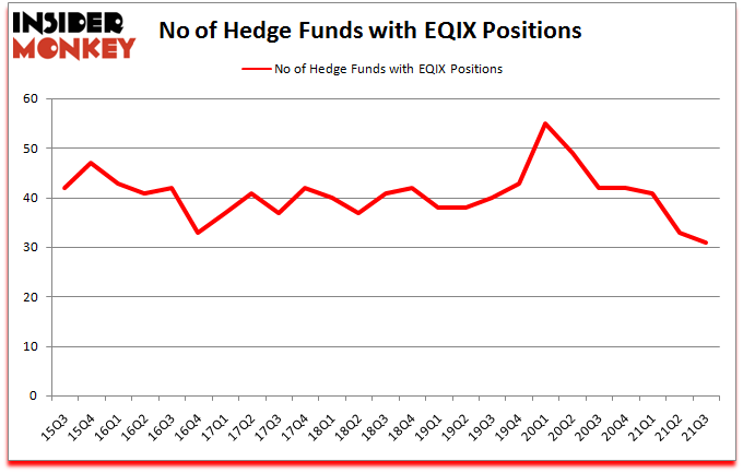Equinix Inc (NASDAQ:EQIX) investors should be aware of a decrease in hedge fund sentiment in recent months. Equinix Inc (NASDAQ:EQIX) was in 31 hedge funds’ portfolios at the end of the third quarter of 2021. The all time high for this statistic is 55. Our calculations also showed that EQIX isn’t among the 30 most popular stocks among hedge funds (click for Q3 rankings).