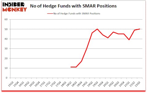 At third quarter’s end, a total of 50 of the hedge funds tracked by Insider Monkey were long this stock, a change of 2% from the second quarter of 2021. By comparison, 45 hedge funds held shares or bullish call options in SMAR a year ago. With hedge funds’ capital changing hands, there exists an “upper tier” of noteworthy hedge fund managers who were boosting their stakes significantly (or already accumulated large positions).