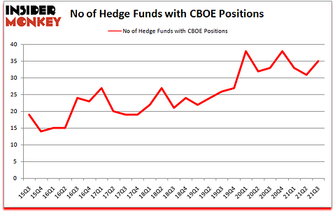 CBOE Global Markets Inc (NASDAQ:CBOE) was in 35 hedge funds’ portfolios at the end of the third quarter of 2021. The all time high for this statistic is 38. CBOE has experienced an increase in hedge fund sentiment of late. There were 31 hedge funds in our database with CBOE positions at the end of the second quarter. Our calculations also showed that CBOE isn’t among the 30 most popular stocks among hedge funds (click for Q3 rankings).