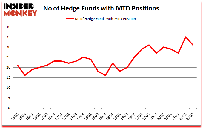 Mettler-Toledo International Inc. (NYSE:MTD) has seen a decrease in hedge fund interest lately. Mettler-Toledo International Inc. (NYSE:MTD) was in 31 hedge funds’ portfolios at the end of the third quarter of 2021. The all time high for this statistic is 35. Our calculations also showed that MTD isn’t among the 30 most popular stocks among hedge funds (click for Q3 rankings).