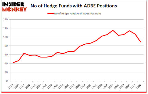 Adobe Inc. (NASDAQ:ADBE) investors should be aware of a decrease in activity from the world’s largest hedge funds recently. Adobe Inc. (NASDAQ:ADBE) was in 89 hedge funds’ portfolios at the end of the second quarter of 2021. The all time high for this statistic is 115. There were 107 hedge funds in our database with ADBE holdings at the end of March. Our calculations also showed that ADBE ranked 25th among the 30 most popular stocks among hedge funds (click for Q2 rankings).