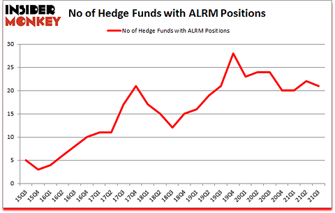 Alarm.com Holdings Inc (NASDAQ:ALRM) shareholders have witnessed a decrease in hedge fund sentiment in recent months. Alarm.com Holdings Inc (NASDAQ:ALRM) was in 21 hedge funds’ portfolios at the end of the third quarter of 2021. The all time high for this statistic is 28. There were 22 hedge funds in our database with ALRM holdings at the end of June. Our calculations also showed that ALRM isn’t among the 30 most popular stocks among hedge funds (click for Q2 rankings).