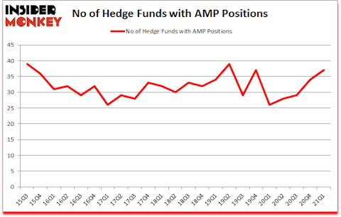 Ameriprise Financial, Inc. (NYSE:AMP) has seen an increase in support from the world’s most elite money managers in recent months. Ameriprise Financial, Inc. (NYSE:AMP) was in 37 hedge funds’ portfolios at the end of March. The all time high for this statistic is 39. There were 34 hedge funds in our database with AMP positions at the end of the fourth quarter. Our calculations also showed that AMP isn’t among the 30 most popular stocks among hedge funds (click for Q1 rankings).
