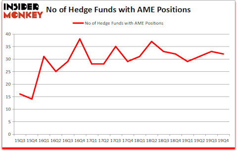 At Q4’s end, a total of 32 of the hedge funds tracked by Insider Monkey held long positions in this stock, a change of -3% from the third quarter of 2019. The graph below displays the number of hedge funds with bullish position in AME over the last 18 quarters. With the smart money’s capital changing hands, there exists a few notable hedge fund managers who were increasing their holdings meaningfully (or already accumulated large positions).