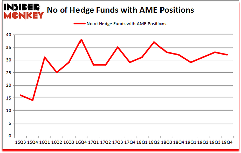 At Q4’s end, a total of 32 of the hedge funds tracked by Insider Monkey held long positions in this stock, a change of -3% from the third quarter of 2019. The graph below displays the number of hedge funds with bullish position in AME over the last 18 quarters. With the smart money’s capital changing hands, there exists a few notable hedge fund managers who were increasing their holdings meaningfully (or already accumulated large positions).
