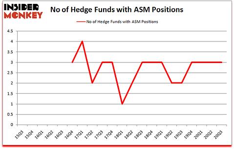At the end of September, a total of 3 of the hedge funds tracked by Insider Monkey were bullish on this stock, a change of 0% from the second quarter of 2020. Below, you can check out the change in hedge fund sentiment towards ASM over the last 21 quarters. So, let’s examine which hedge funds were among the top holders of the stock and which hedge funds were making big moves.