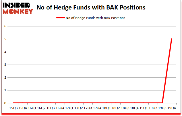 At Q4’s end, a total of 5 of the hedge funds tracked by Insider Monkey were bullish on this stock, a change of 5 from the previous quarter. By comparison, 0 hedge funds held shares or bullish call options in BAK a year ago. So, let’s review which hedge funds were among the top holders of the stock and which hedge funds were making big moves.