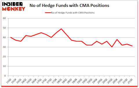 Heading into the fourth quarter of 2021, a total of 31 of the hedge funds tracked by Insider Monkey were long this stock, a change of -6% from the second quarter of 2021. Below, you can check out the change in hedge fund sentiment towards CMA over the last 25 quarters. So, let’s find out which hedge funds were among the top holders of the stock and which hedge funds were making big moves.