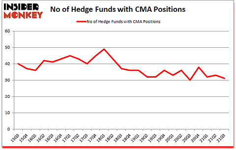 Heading into the fourth quarter of 2021, a total of 31 of the hedge funds tracked by Insider Monkey were long this stock, a change of -6% from the second quarter of 2021. Below, you can check out the change in hedge fund sentiment towards CMA over the last 25 quarters. So, let’s find out which hedge funds were among the top holders of the stock and which hedge funds were making big moves.