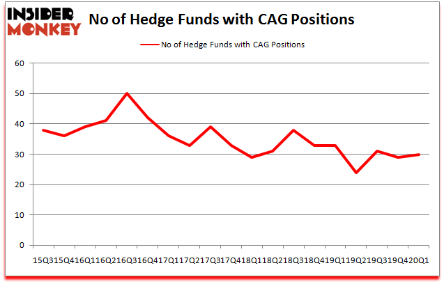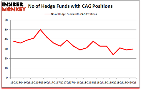 Conagra Brands, Inc. (NYSE:CAG) was in 30 hedge funds’ portfolios at the end of March. CAG has seen an increase in support from the world’s most elite money managers lately. There were 29 hedge funds in our database with CAG positions at the end of the previous quarter. Our calculations also showed that CAG isn’t among the 30 most popular stocks among hedge funds (click for Q1 rankings and see the video for a quick look at the top 5 stocks).