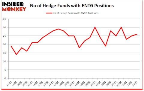 Is Entegris Inc (NASDAQ:ENTG) undervalued? Prominent investors were buying. The number of bullish hedge fund positions inched up by 1 lately. Entegris Inc (NASDAQ:ENTG) was in 26 hedge funds’ portfolios at the end of the third quarter of 2021. The all time high for this statistic is 30. Our calculations also showed that ENTG isn’t among the 30 most popular stocks among hedge funds (click for Q3 rankings). There were 25 hedge funds in our database with ENTG holdings at the end of June.