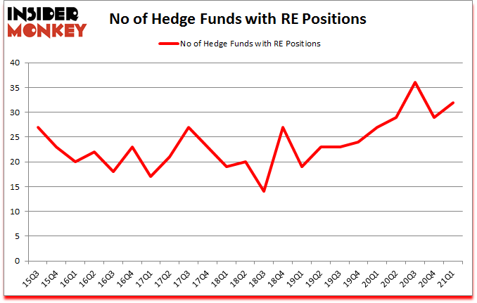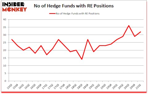 Heading into the second quarter of 2021, a total of 32 of the hedge funds tracked by Insider Monkey held long positions in this stock, a change of 10% from the previous quarter. Below, you can check out the change in hedge fund sentiment towards RE over the last 23 quarters. With hedge funds’ sentiment swirling, there exists a select group of notable hedge fund managers who were upping their stakes substantially (or already accumulated large positions).