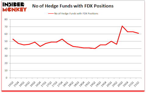 FedEx Corporation (NYSE:FDX) was in 61 hedge funds’ portfolios at the end of the second quarter of 2021. The all time high for this statistic is 71. FDX has seen a decrease in enthusiasm from smart money lately. There were 63 hedge funds in our database with FDX positions at the end of the first quarter. Our calculations also showed that FDX isn’t among the 30 most popular stocks among hedge funds (click for Q2 rankings).