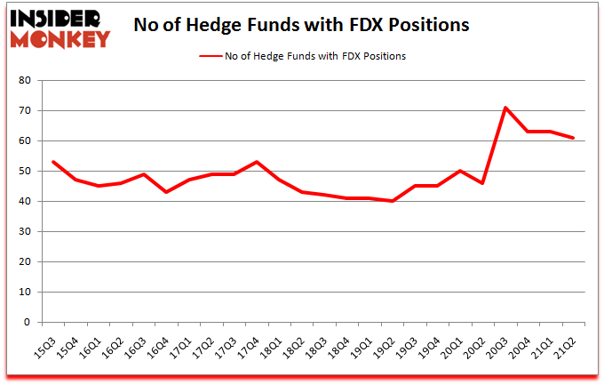 FedEx Corporation (NYSE:FDX) was in 61 hedge funds’ portfolios at the end of the second quarter of 2021. The all time high for this statistic is 71. FDX has seen a decrease in enthusiasm from smart money lately. There were 63 hedge funds in our database with FDX positions at the end of the first quarter. Our calculations also showed that FDX isn’t among the 30 most popular stocks among hedge funds (click for Q2 rankings).