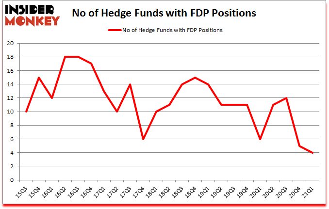 At the end of March, a total of 4 of the hedge funds tracked by Insider Monkey held long positions in this stock, a change of -20% from one quarter earlier. The graph below displays the number of hedge funds with bullish position in FDP over the last 23 quarters. So, let’s examine which hedge funds were among the top holders of the stock and which hedge funds were making big moves.