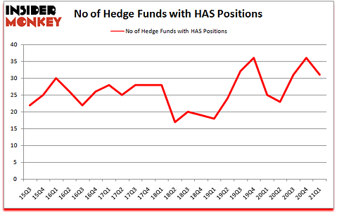 Hasbro, Inc. (NASDAQ:HAS) investors should be aware of a decrease in activity from the world’s largest hedge funds lately. Hasbro, Inc. (NASDAQ:HAS) was in 31 hedge funds’ portfolios at the end of the first quarter of 2021. The all time high for this statistic is 36. There were 36 hedge funds in our database with HAS holdings at the end of December. Our calculations also showed that HAS isn’t among the 30 most popular stocks among hedge funds (click for Q1 rankings).