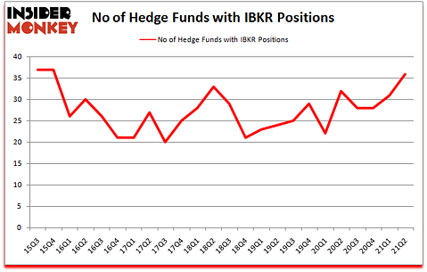 Interactive Brokers Group, Inc. (NASDAQ:IBKR) was in 36 hedge funds’ portfolios at the end of the second quarter of 2021. The all time high for this statistic is 37. IBKR has seen an increase in hedge fund interest recently. There were 31 hedge funds in our database with IBKR holdings at the end of March. Our calculations also showed that IBKR isn’t among the 30 most popular stocks among hedge funds (click for Q2 rankings).