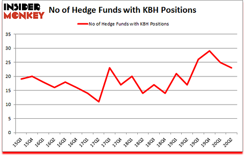 Is KB Home (NYSE:KBH) a bargain? Prominent investors were in a pessimistic mood. The number of bullish hedge fund bets decreased by 2 recently. KB Home (NYSE:KBH) was in 23 hedge funds’ portfolios at the end of the second quarter of 2020. The all time high for this statistics is 29. Our calculations also showed that KBH isn’t among the 30 most popular stocks among hedge funds (click for Q2 rankings and see the video for a quick look at the top 5 stocks). There were 25 hedge funds in our database with KBH holdings at the end of March.