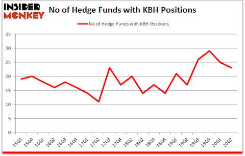 Is KB Home (NYSE:KBH) a bargain? Prominent investors were in a pessimistic mood. The number of bullish hedge fund bets decreased by 2 recently. KB Home (NYSE:KBH) was in 23 hedge funds’ portfolios at the end of the second quarter of 2020. The all time high for this statistics is 29. Our calculations also showed that KBH isn’t among the 30 most popular stocks among hedge funds (click for Q2 rankings and see the video for a quick look at the top 5 stocks). There were 25 hedge funds in our database with KBH holdings at the end of March.