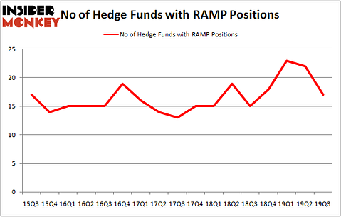 At the end of the third quarter, a total of 17 of the hedge funds tracked by Insider Monkey were long this stock, a change of -23% from one quarter earlier. Below, you can check out the change in hedge fund sentiment towards RAMP over the last 17 quarters. With the smart money’s sentiment swirling, there exists a select group of notable hedge fund managers who were adding to their holdings significantly (or already accumulated large positions).