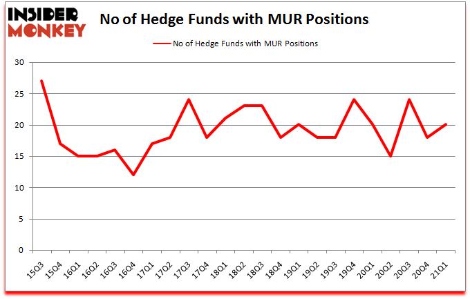 Heading into the second quarter of 2021, a total of 20 of the hedge funds tracked by Insider Monkey were long this stock, a change of 11% from one quarter earlier. The graph below displays the number of hedge funds with bullish position in MUR over the last 23 quarters. With the smart money’s positions undergoing their usual ebb and flow, there exists a few notable hedge fund managers who were upping their stakes considerably (or already accumulated large positions).