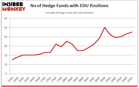 Is New Oriental Education & Technology Group Inc. (NYSE:EDU) undervalued? The smart money was becoming hopeful. The number of long hedge fund positions improved by 2 recently. New Oriental Education & Technology Group Inc. (NYSE:EDU) was in 45 hedge funds’ portfolios at the end of the first quarter of 2021. The all time high for this statistic is 50. Our calculations also showed that EDU isn’t among the 30 most popular stocks among hedge funds (click for Q1 rankings). There were 43 hedge funds in our database with EDU positions at the end of the fourth quarter.