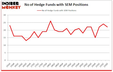 Select Medical Holdings Corporation (NYSE:SEM) investors should be aware of a decrease in activity from the world’s largest hedge funds in recent months. Select Medical Holdings Corporation (NYSE:SEM) was in 22 hedge funds’ portfolios at the end of the third quarter of 2021. The all time high for this statistic is 26. Our calculations also showed that SEM isn’t among the 30 most popular stocks among hedge funds (click for Q2 rankings).