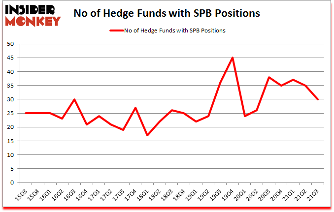At the end of September, a total of 30 of the hedge funds tracked by Insider Monkey held long positions in this stock, a change of -14% from the second quarter of 2021. The graph below displays the number of hedge funds with bullish position in SPB over the last 25 quarters. With hedge funds’ capital changing hands, there exists an “upper tier” of key hedge fund managers who were boosting their stakes meaningfully (or already accumulated large positions).