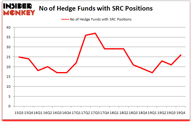 At the end of the fourth quarter, a total of 26 of the hedge funds tracked by Insider Monkey held long positions in this stock, a change of 24% from the third quarter of 2019. By comparison, 19 hedge funds held shares or bullish call options in SRC a year ago. So, let’s examine which hedge funds were among the top holders of the stock and which hedge funds were making big moves.