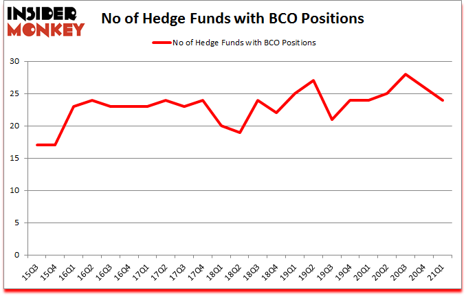 At Q1’s end, a total of 24 of the hedge funds tracked by Insider Monkey were long this stock, a change of -8% from the previous quarter. On the other hand, there were a total of 24 hedge funds with a bullish position in BCO a year ago. With hedge funds’ capital changing hands, there exists a few key hedge fund managers who were upping their stakes meaningfully (or already accumulated large positions).
