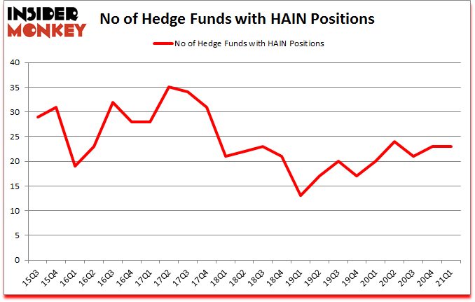At the end of March, a total of 23 of the hedge funds tracked by Insider Monkey were bullish on this stock, a change of 0% from the previous quarter. The graph below displays the number of hedge funds with bullish position in HAIN over the last 23 quarters. With hedgies’ capital changing hands, there exists a few notable hedge fund managers who were increasing their holdings meaningfully (or already accumulated large positions).